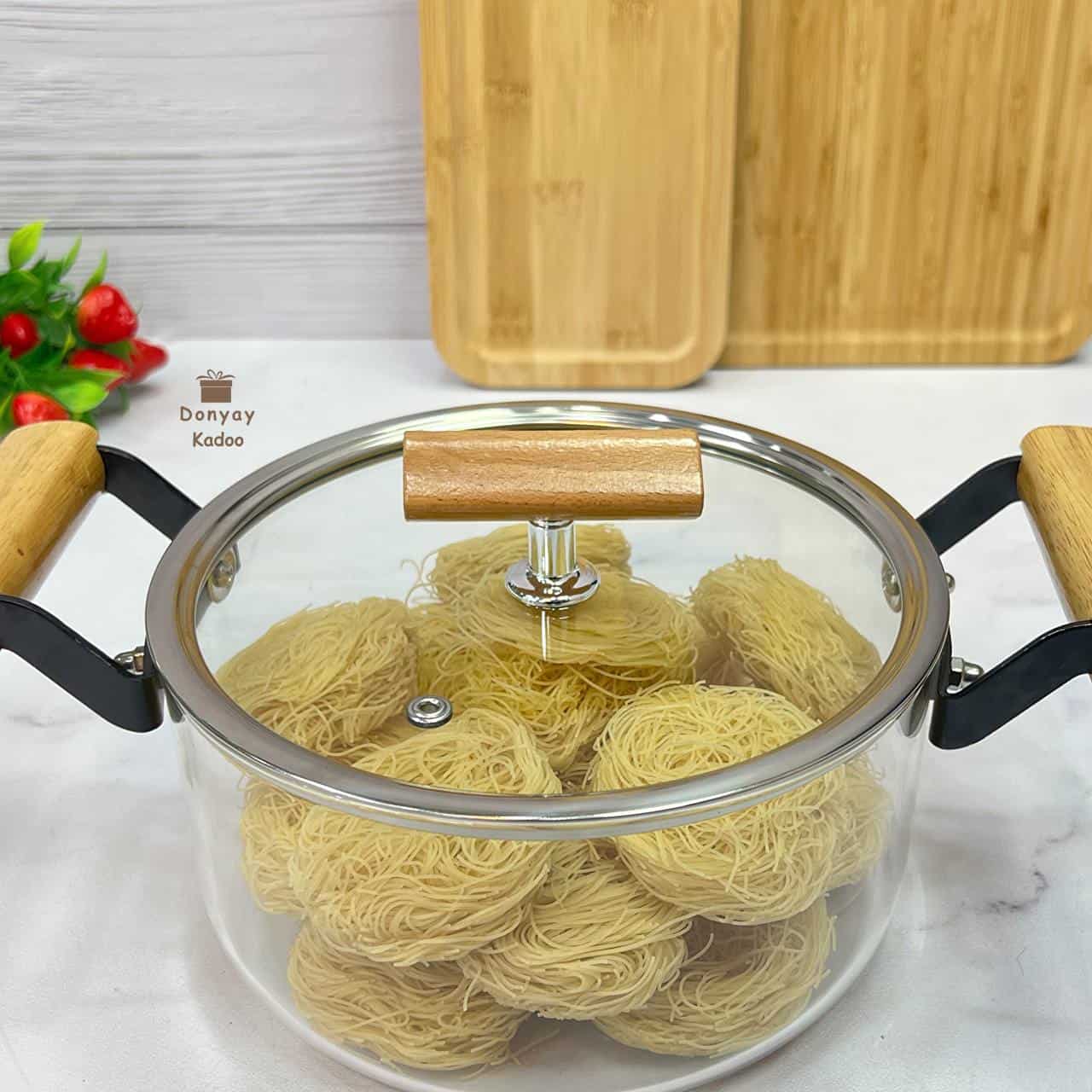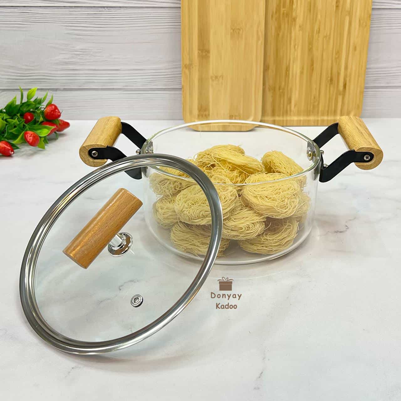خانه » فروشگاه » ظروف سرو و پذیرایی » ظروف پیرکس » قابلمه پیرکس دسته چوبی